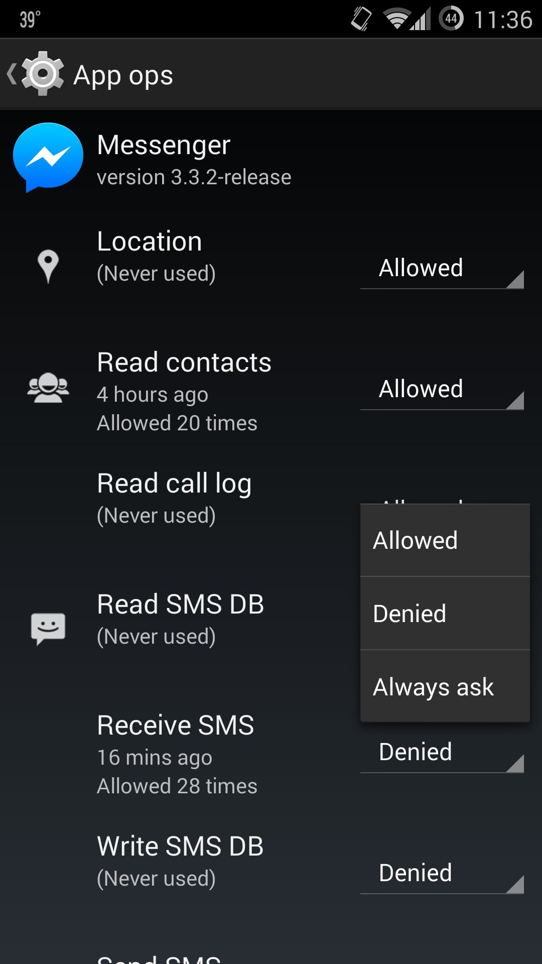 Another useful part of AppOpsXposed is that it tells you whether or not each app has acted upon its permissions. This means that you can check on whether or not your apps are trying to act upon permissions that don’t seem relevant to the way they work.
