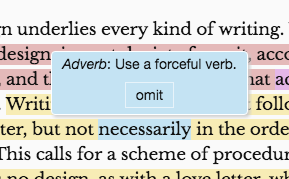 The suggestions for adverbs (as above) are less specific, since Hemingway tells you to use a different verb rather than modifying it with an adverb. On the other hand, it is often wise to do as its alternative suggests: Just get rid of the adverb and leave everything else.