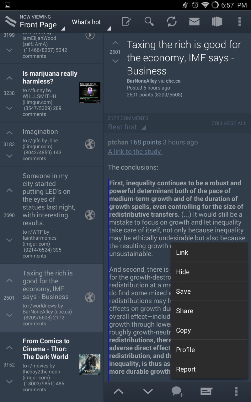 Here’s a quick look at how the saving process goes on a couple of my most-used mobile apps, BaconReader (a Reddit client) and Plume (a Twitter client). Really, once you hit the share button, your experience will be pretty similar across most apps.