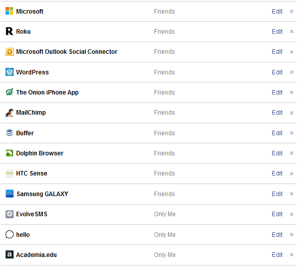 Thanks to MyPermissions, I can see that I need to sever this connection with Dolphin (and some other apps that I just don’t use anymore). This applies to more than Facebook. As of the time of this writing, they also help you manage permissions for the following services: